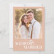 Celebrate your first holiday season as newlyweds with this elegant “Merry & Married” photo design featuring a soft blush background and a large customizable photo space. The classic typography and subtle gold frame create a warm, romantic feel that highlights your favorite wedding or engagement photo. Perfect for sharing joy, love, and your happily ever after with family and friends this Christmas.