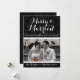 Elegant, timeless, classic, dark black and charcoal grey damask background pattern in bold black and white. The newlywed couple is finally married, and ready to show off their new life together with custom photo Holiday cards with the theme "married and merry" . Wish family and friends and wedding guests a great time with this black and white damask background.