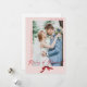 This blush Newlywed Christmas card is classic and simple yet still whimsical. Share your wedding photo of the bride and groom with friends and family in this design that features the words "Merry and Married" in a script calligraphy accented by a serif font. Your wedding picture is accented by a hand painted watercolor red bow to add a feminine holiday touch!