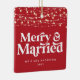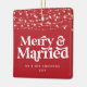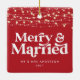 Christmas wedding announcement string light modern typography Merry and Married Christmas holiday wedding ornament. Modern red design.