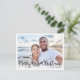 Share your favourite beach vacation picture with this fun and modern beach Christmas photo card featuring a trendy hand-lettered typography overlay that reads "Merry Beachy Christmas" decorated with waves, sun, and surfboard illustrations. Easily personalizable with one of your favourite holiday pictures and your names. The back of the card features a wave pattern in blue and white.