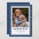 Merry Blue Plaid Single Photo Holiday Card