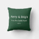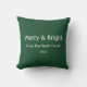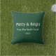 Merry & Bright Christmas Custom Name Hunter Green Outdoor Pillow