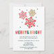Red, green, gold and pink snowflake "Merry and Bright" Christmas party invitations. Customize with your party details and mail out to your guests inviting them to your Christmas party this year.
