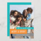 Merry and bright christmas customizable photo card in elegant and contemporary turquoise teal blue, grey, orange and white. Add your photo and custom text to this card to create a unique christmas greeting this holiday season for friends and family.
