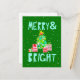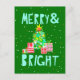 A bright Christmas tree adorned with colourful ornaments is surrounded by pink and red gifts just waiting to be opened. This design features the phrase "Merry & Bright." | Blanckslate | 141050D
