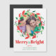 Belle couronne sainte avec mistletoe et baies complétée par votre photo de famille présentée au centre. Carte magnétique moderne colorée de vacances avec Merry & Bright écrit en jolie typographie au-dessus de vos noms de famille.
