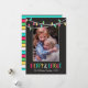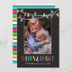 Colourful holiday photo you can upload your own photo to, with rows of colourful Christmas lights. Merry & Bright is written in charming letters in fun colours. Add your name and year in a pretty script. The back features matching stripes in white, turquoise, hot pink, green, yellow, and charcoal.