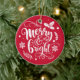 Merry & Bright Custom Family Name Red Christmas Ceramic Ornament