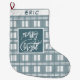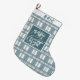 Lovely Christmas stocking with Merry & Bright in decorative script and mint green plaid background.