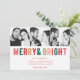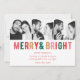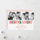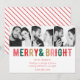 Christmas cards to announce your engagement in a three photo "Merry and Bright" colorful text design. Customized with your text and three square photos. (Crop to squares before uploading for best results.) Contact me if you need assistance. This invite reverses to a coordinating red and white candy cane diagonal stripe on the back.