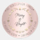 Merry Bright Family Address Wreath Gold Rose Classic Round Sticker