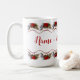 Les couleurs blanches et rouges sont audacieuses et fraîches pour les vacances. Cette tasse a une bordure de guirlandes de poinsettia rouge vif sur le dessus et le fond. Un message amusant, "Votre nom" soit joyeux et lumineux !" Profitez de votre café", et partagez-en un pour un ami.