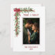 Merry & Bright sentiment one photo Christmas Card. Personalize with your favorite photo and name and year in coordinating holiday red color. Flowing watercolor mistletoe cascading down each side of this lovely greeting card for all your family and friends.