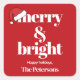 Merry & Bright | Modern Whimsical Red Christmas Square Sticker