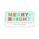Add a cheerful finishing touch to your holiday cards, gifts, or packages with this vibrant “Merry + Bright” Christmas label. Featuring retro-inspired pastel typography on a mint background, this festive label includes room for a personal message or family name. Perfect for gift wrap, holiday mail, and festive party favours.
