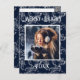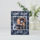 Merry & Bright typography. Navy blue background with beautiful brocade design with your favourite photo in the centre. Personalize with your message and name on the reverse side. The perfect holiday greeting card.
