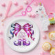Make your holiday gatherings extra magical with these Merry & Bright Purple Christmas Paper Plates, featuring a whimsical candy cane bow and adorable elf shoes in rich festive shades of pink and purple.