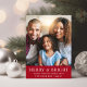 Modern red Christmas holiday card featuring your photo and "Merry & Bright" in stylish white typography. Personalize with your greeting and name in simple white typography.