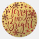 Merry & Bright Red Holiday Snowflakes Christmas Classic Round Sticker