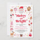 Merry & Bright Red Pink Santa Christmas Party Invitation