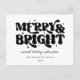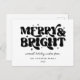 Festive Merry & Bright Retro Typography, holiday postcard.
