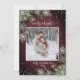 Based on my bestselling Winter Wedding Invitation Suite, this warm, cozy burgundy wood design photo Christmas Card features 'merry & bright' in hand lettered script, your favourite wedding photo, and is decorated with silver glitter snowflakes and watercolor pine branches, and a burgundy and black buffalo plaid texture. Personalize with your photo, name and year. Please contact designer for matching products, or design variations, and view the Holiday Suite here: https://www.zazzle.com/collections/rustic_burgundy_silver_winter_plaid_wood_christmas-119954909896873769 Copyright Anastasia Surridge for Elegant Invites, all rights reserved.