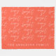 Merry & Bright script text red and white Christmas blanket. Part of a collection.