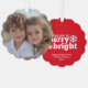 Merry & Bright Simple Red White - Christmas Photo Ornament Card