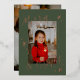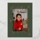 Celebrate the season with this beautifully hand-lettered Merry & Bright Holiday card featuring elegant script overlay on an evergreen backdrop. The front showcases your family photo framed with modern hand-lettering while the back includes an additional photo.