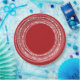 Modern and stylish strands of circles, draping and overlapping sparkling lights on a red background.