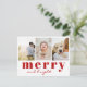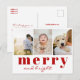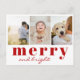 Merry Bright Three Photo Chic Red White Christmas Holiday Postcard