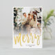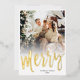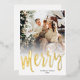 Merry Brush Script Minimalist Vertical Photo Real Foil Holiday Card