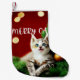 A cute kitten on a Christmas stocking,purrfect for a cat lover !
