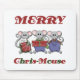 Three grey Christmas mice and text that reads "Merry Chris-Mouse" on Christmas holiday T-shirts, hoodies, sweatshirts, mugs, cards, stickers, tote bags, and other holiday clothing and gifts.
