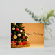 Merry Christmas card with a gold background and tree.