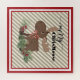 This whimsical moose is just adorable with a red ribbon bow tied around his neck. He's standing amongst pine boughs and berries. The text above reads "Merry ChrisMoose". Background is a tan and white diagonal stripe. This makes a fun, festive holiday puzzle for the kids and the adults!