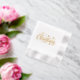 This lovely, elegant look paper napkin is shown in the white color with gold foil stamping, shown with a Merry Christmas print.