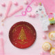 Merry Christmas 20XX Red Gold Tree Stars 7" Paper Plate