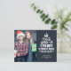 Modern holiday greeting postcard, customizable with one of your favourite family Christmas portraits on the front, beside a lovely white lettering caption that reads "we wish you a merry Christmas" over a plain dark grey background.