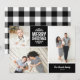 Affordable custom printed holiday photo cards with simple templates for customization. This modern rustic design has a photo collage layout with space for 3 family photos and text in coordinating color blocks - edit the colors to match any photos. Personalize it with your photos and add your family name and the year. Reverse side has a buffalo check plaid pattern or use the space for additional photos and text. Use the design tools to edit the text, add more photos and create a unique one of a kind Christmas photo card design.