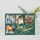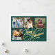 Elegant stylish Merry Christmas faux gold classic calligraphy script four square family photos simple pine green holiday card with your custom personalized text on both sides. +++++++++ PLEASE NOTE that the background colour is editable. You can change it after selecting CUSTOMIZE option down below the PERSONALIZE IT menu. If you don't feel at ease changing it, please ask Zazzle Live Design Service or the designer for help.