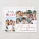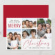 Modern holiday greeting card featuring a 4 photo collage, "We Wish You A Very Merry Christmas" in simple typography and an elegant red script and your name and the year.