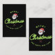 This image displays a "Merry Christmas and Happy New Year" greeting card with a striking and contrasting design. The deep black background highlights the word "Christmas," which is written large and bold in a bright, neon lime-green cursive style, accompanied by an illustration of a smiling Santa Claus head at the top. The overall design has a modern and festive feel, with essential red and green color accents for the celebration.