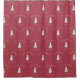 "Merry Christmas and Happy New Year" shower curtain with red textured paper background featuring a snow-covered fir tree and snowflakes.