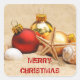 A sandy beach with a Christmas ornaments depicting a warm weather holiday. Perfect for your warm weather getaway or location! Wish someone a Merry Christmas from across the miles - totally customizable for you to personalize as you please!
