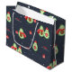 Merry Christmas. A cute avocado wearing a scarf and holding a Christmas present.