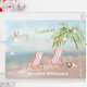 Merry Christmas on this lovely Watercolor Beach -- peaceful and gentle scene with two beach chairs -- friendly flamingo with lovely wreath -- Palm tree with a few ornaments. Also available in different paper weights -- your selection.