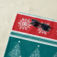 Merry Christmas illustration with Christmas tree and snowflakes decoration on red, white, blue and turquoise striped background