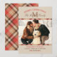 Send Merry Christmas cheer with this classic plaid monogram holiday card featuring your favorite photo, family name, and initial. Warm beige / tan and red tartan framing keeps it timeless and cozy. The back features a coordinating plaid pattern for a polished finish. A sweet fit for couples, families, and even pet photos.